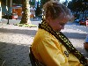 Herrscharen von schwarz-gelb-gekleidete Menschen ziehen an uns vorbei.
